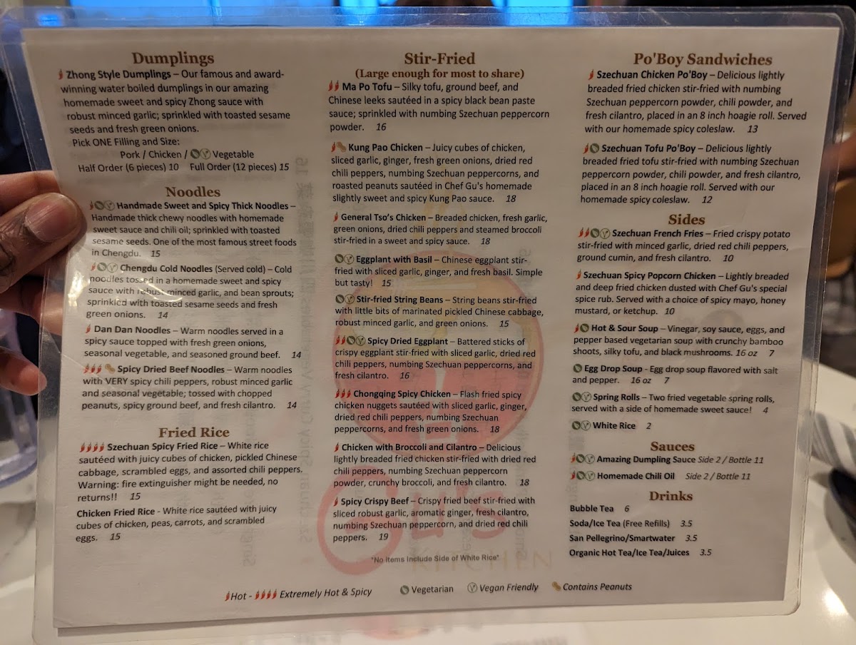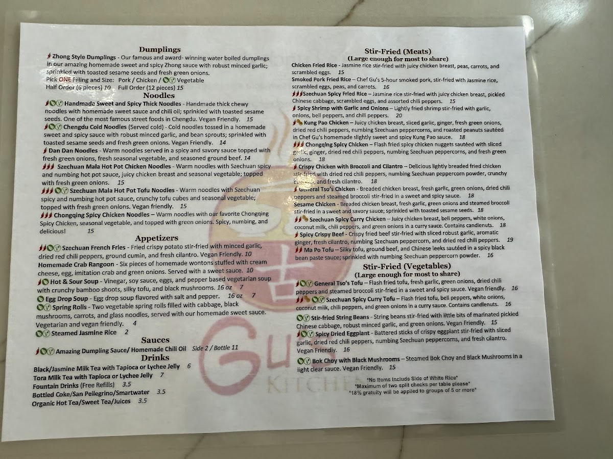 Located in Chamblee, Georgia, Gu’s Kitchen is a culinary gem offering authentic Chinese cuisine that has garnered rave reviews from locals and food enthusiasts alike. The menu showcases artisan dumplings and handmade noodles, crafted with care and a personal touch. Highlights include the renowned Zhong Style Pork Dumplings and the Handmade Sweet and Spicy Thick Noodles, both bursting with flavor and perfectly chewy—hallmarks of true homemade fare.